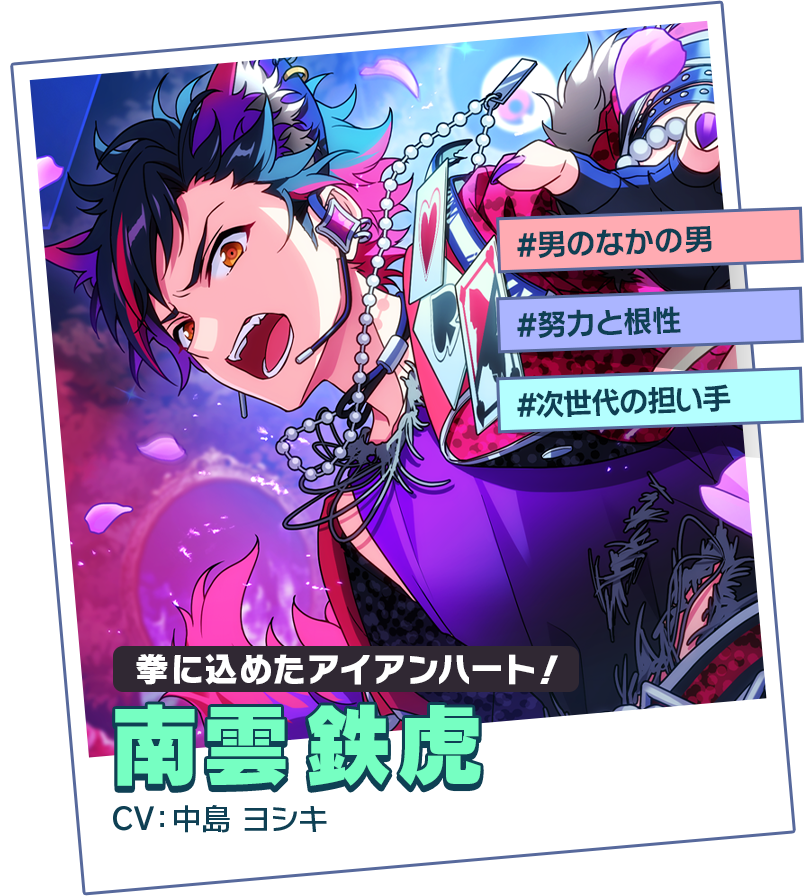 診断の結果、君が最も力を発揮できるアイドルは彼のようだ!どうプロデュースしていくか、是非検討してくれたまえ!Comment相性バッチリだなんて光栄ッス! 俺は南雲鉄虎。デッカい男を目指して日々精進しているところッス! 格闘技が得意なんで、もし活かせる仕事があれば任せてもらえると嬉しいッス。一生懸命がんばるんで、よろしくお願いするッス!MusicVideo南雲 鉄虎をさらに詳しくご紹介!Commentえ〜、オレがいちばんのアイドルじゃないなんて悔しいぜ! オレもプロデュースしてほしかったんだぜ〜。次はプロデュースしてほしいぜ!天満 光をさらに詳しくご紹介!Comment残念ですね。あなたとは相性が良いと思っていたのですが、上回るIdolがいたとは。今回は仕方ありませんが、次は私をProduceしてくださいね朱桜 司をさらに詳しくご紹介! ナイスな第一歩を踏み出したようだね。この勢いを維持すれば、きっと君の未来は明るいのだよ!2831万円規模■グッズ約55%■ライブ・イベント約15%■タイアップ約8%■配信約2%■その他約10%